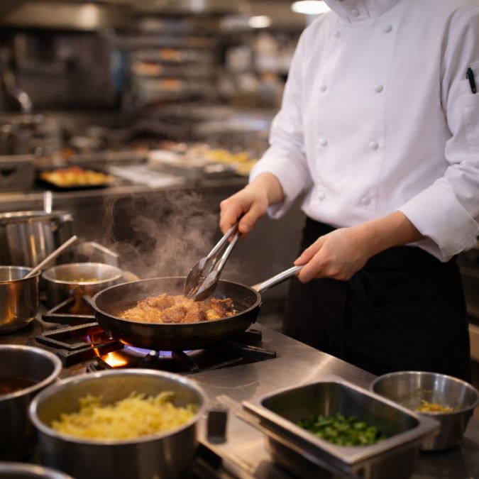 和洋バイキングを中心に、仕込みや盛り付け、ライブキッチンでのステーキやパスタ、フレンチトーストなど幅広い調理を担当します。